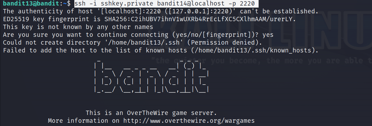 아래와 같이 bandit14에 login이 되는 것을 확인할 수 있습니다.
