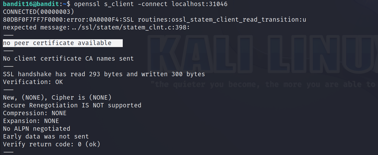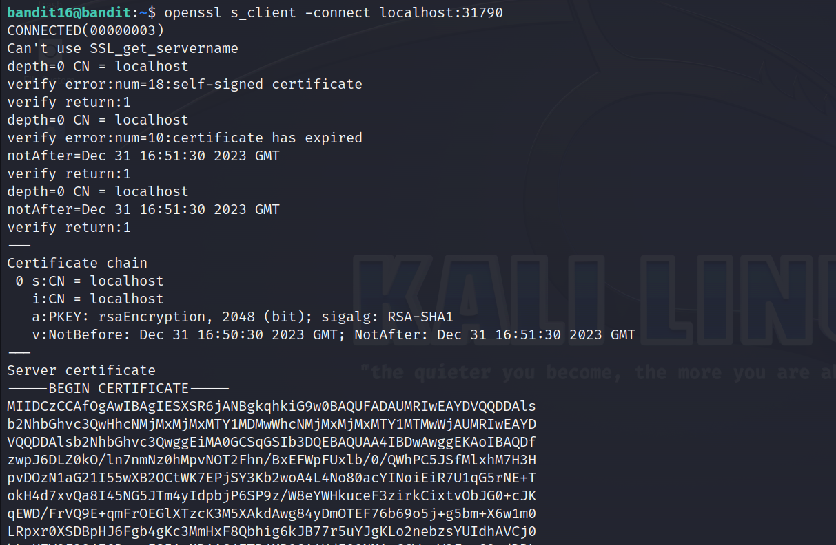 - 문제설명: 다음 단계의 PW는 localhost 31000~32000 범위 SSL 통신으로 연결된 하나의 포트에서 얻을 수 있다.