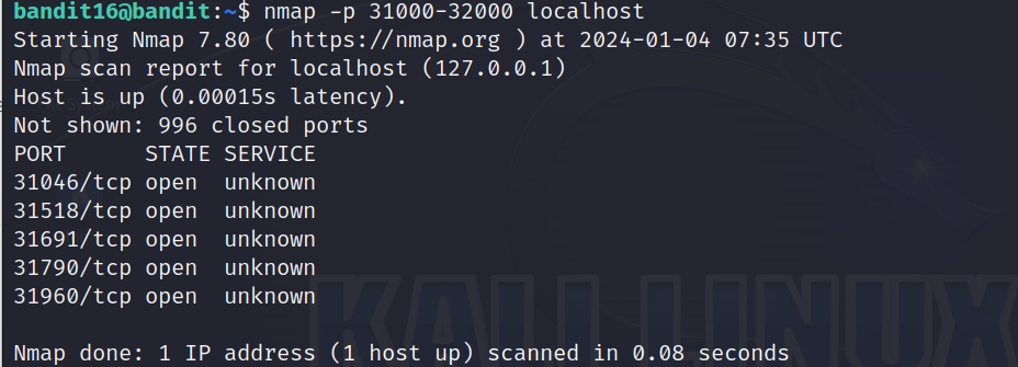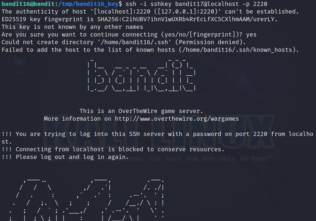 /tmp에 bandit16_key라는 폴더를 만들겠습니다.