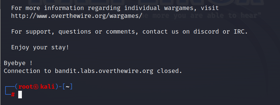 해당 PW로 bandit18에 로그인을 하니 바로 연결이 닫혔습니다. 문제에 나와있듯 다음 bandit19와 관련된 것으로 잘못된 것이 아닙니다. 다음 단계에서 계속 풀어보도록 하겠습니다.