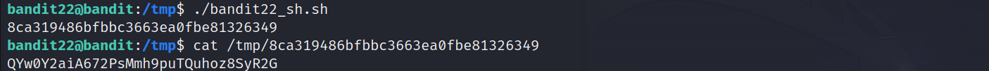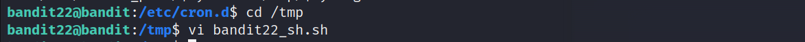 /tmp 로 이동해서 bandit22_sh.sh 파일을 하나 만들어 위의 스크립트 내용을 복사하겠습니다.