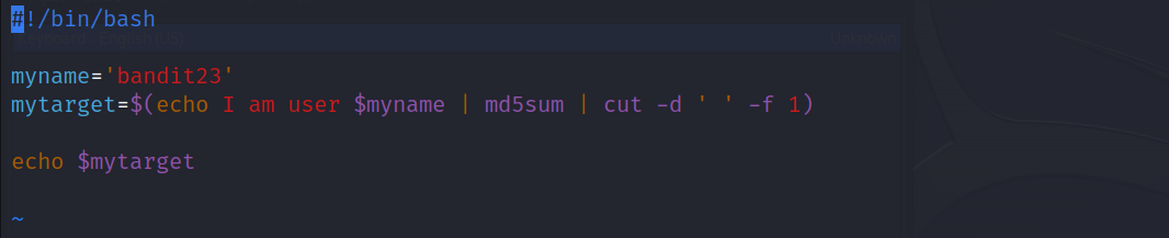 다시 말해 myname 변수에는 'bandit23'이 저장됩니다.) - mytarget이라는 변수에는 I am user ~~ 의 결과를 넣습니다.
