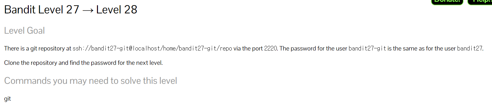 - 문제설명: ssh://bandit27-git@localhost/home/bandit27-git/repo 2220 port에 git 저장소가 있고 bandit27-git의 PW는 bandit27의 PW와 같다. 저장소를 복제하고 다음 단계의 PW를 찾아라