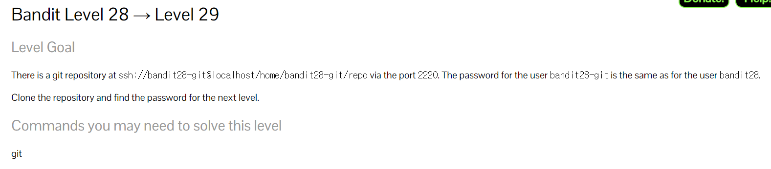 - 문제설명: ssh://bandit28-git@localhost/home/bandit28-git/repo 2220 port에 git 저장소가 있고 bandit28-git의 PW는 bandit28의 PW와 같다. 저장소를 복제하고 다음 단계의 PW를 찾아라