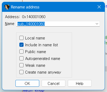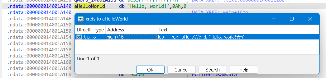 X: Xref(Cross reference), 함수 및 변수가 사용되는 영역을 재참조