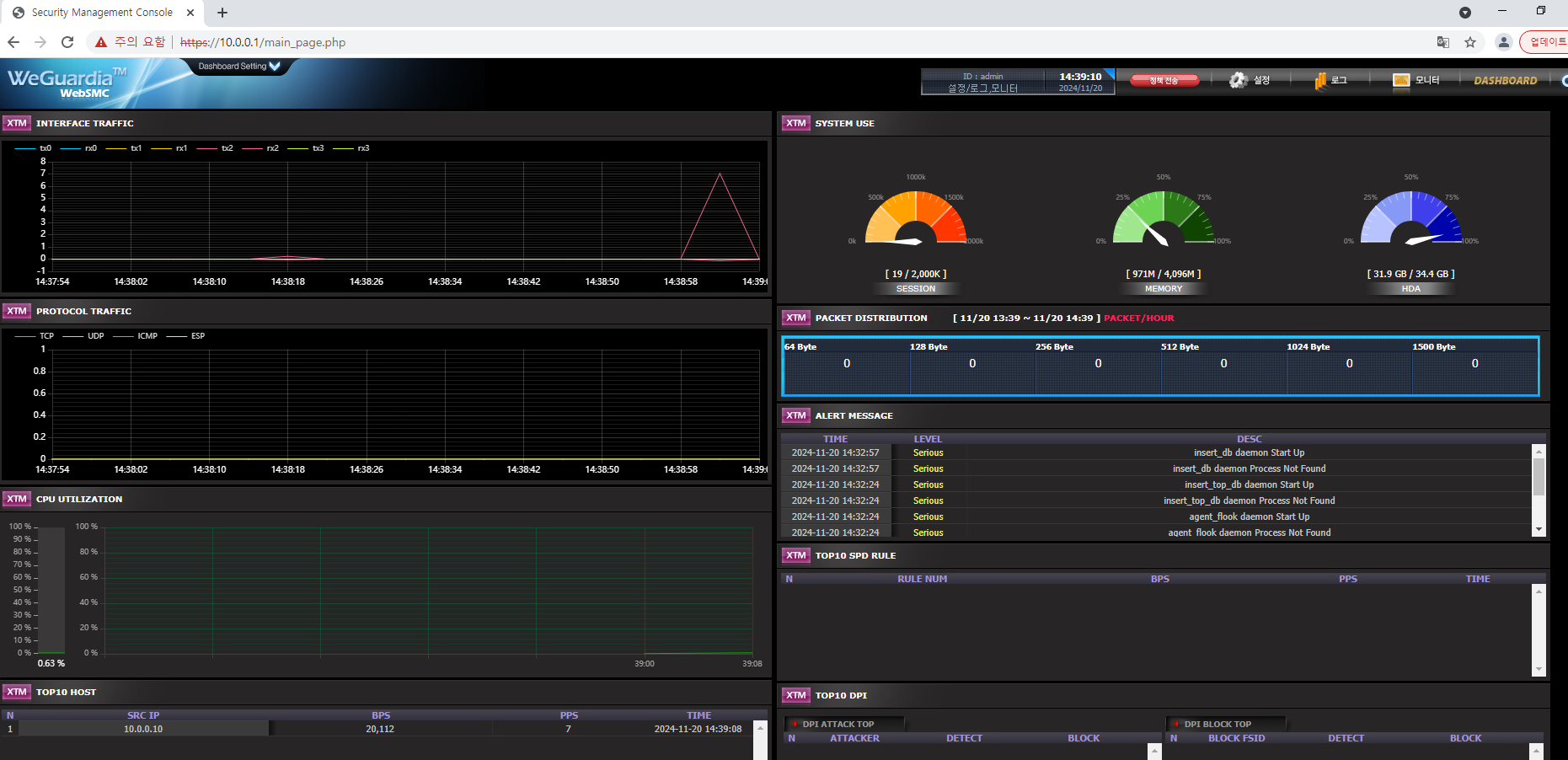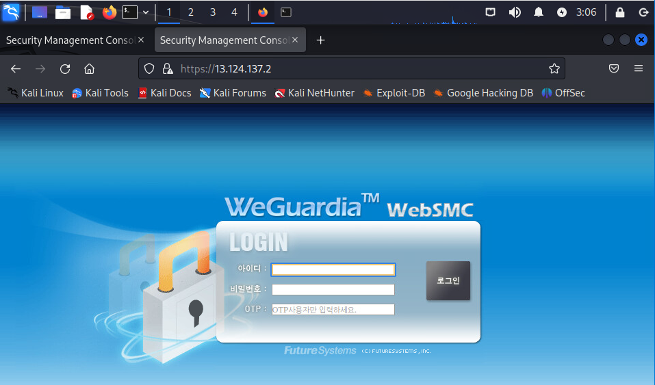 UTM 장비의 관리페이지는 아무나 접근할 수 없어야 하지만 아래와 같이 Attacker의 컴퓨터에서 URL로 접근이 가능함.
