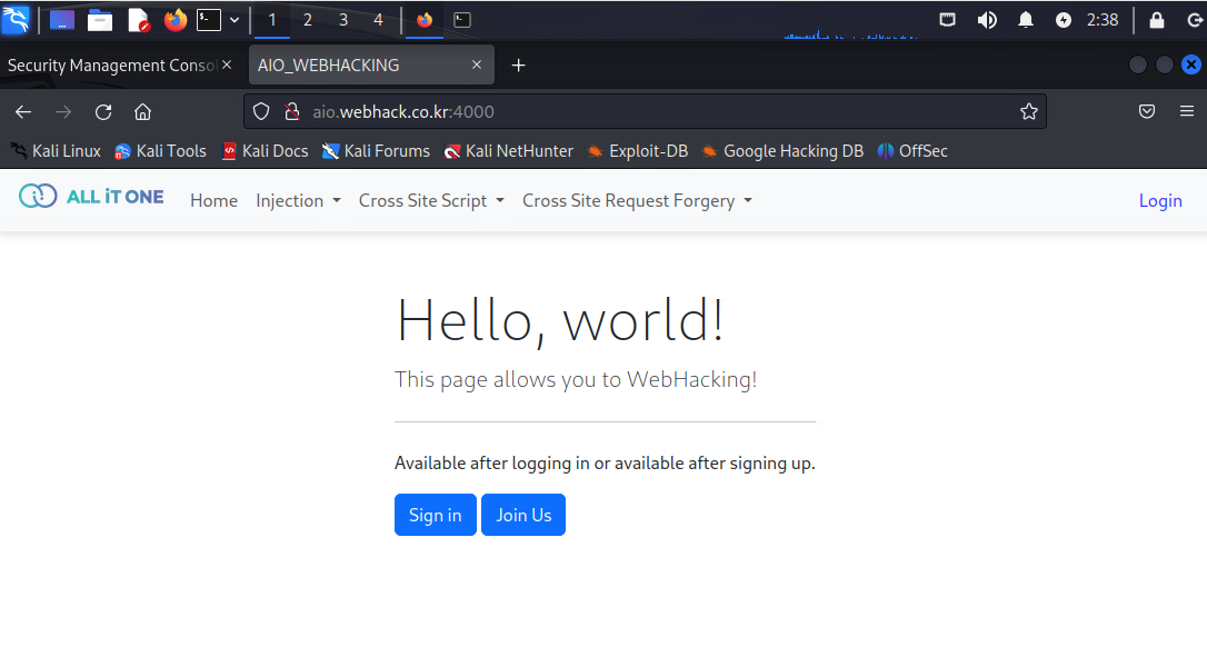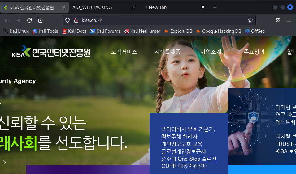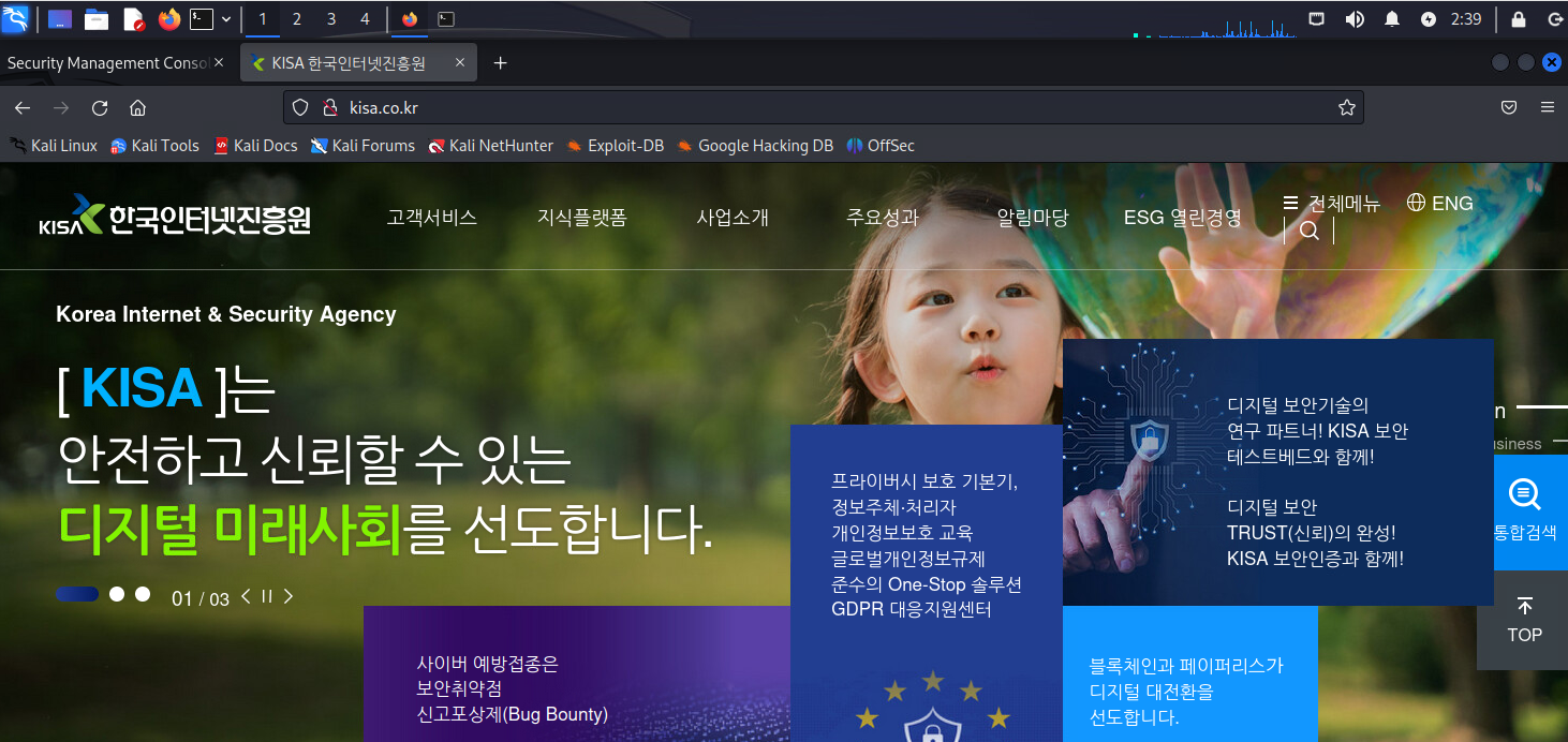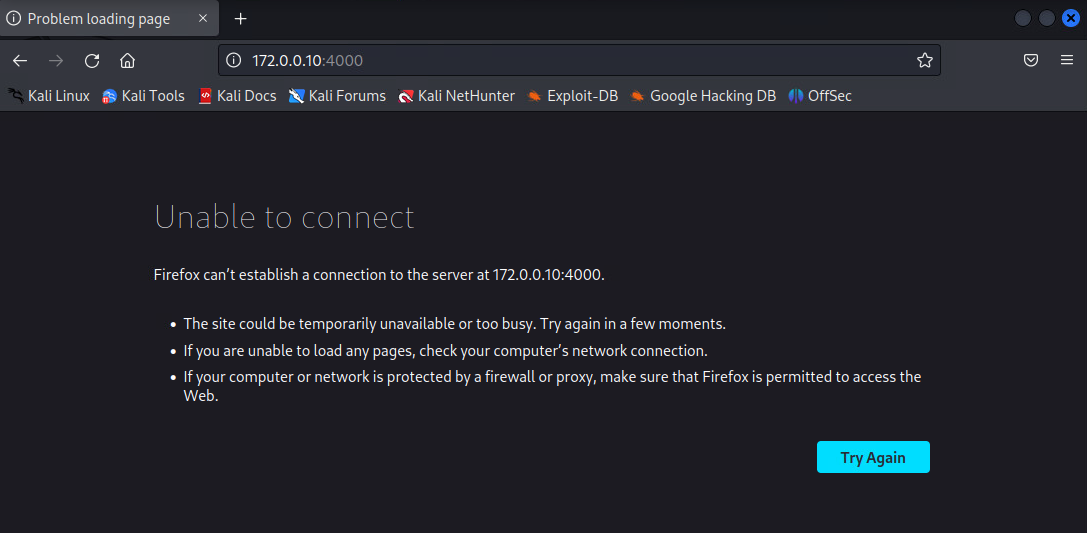 반면 외부의 Attacter의 컴퓨터인 kali에서 접근할 경우 두 사이트 모두 연결이 불가능하다.