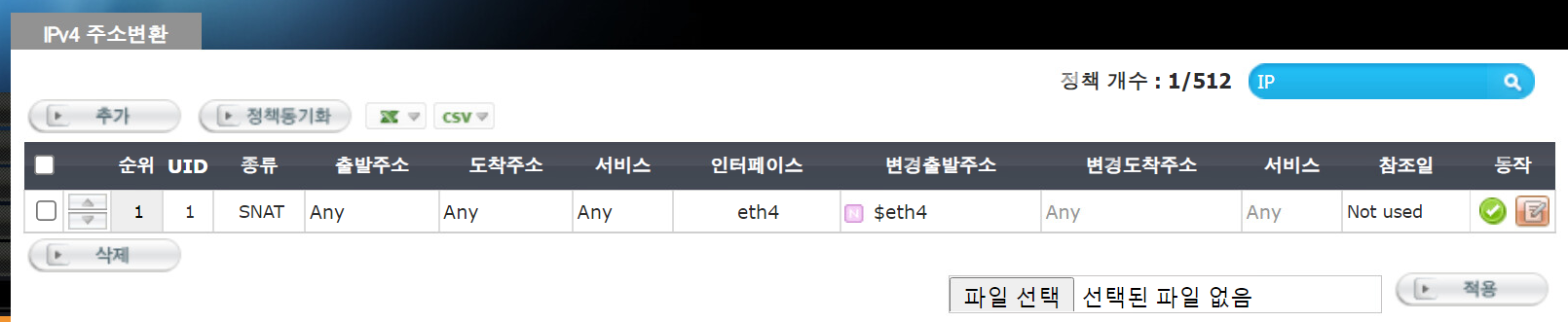 서비스 접근을 위해서는 [사설 IP -> 공인 IP]로 변경해야 하므로 네트워크 인터페이스가 외부인 eth4를 대상으로 SNAT 설정