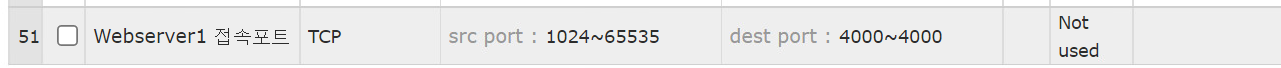 웹서버를 구동할 때의 서비스 포트 객체 추가. 목적지 포트는 4000번으로 설정