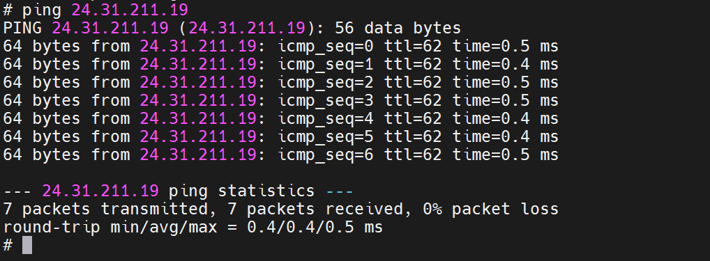 라우팅 설정을 하였으므로, 내부망이 아닌 외부의 다른 IP주소로 ping 하였을 때 전송이 잘되는 것을 확인할 수 있음