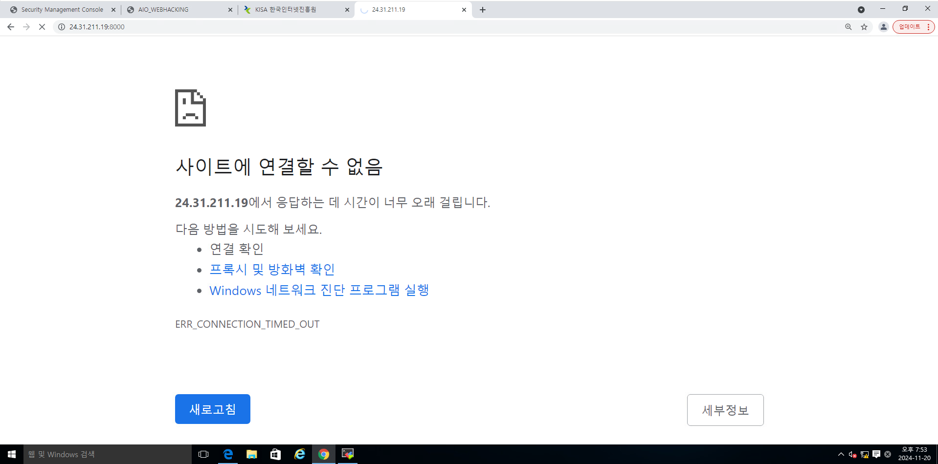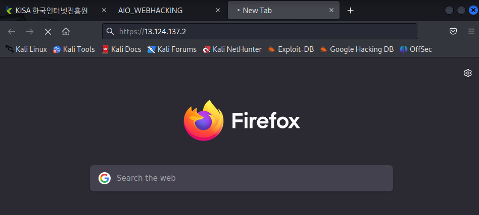 필터링 정책 적용 후 Attacker에서 “https://13.124.137.2”에 접속하면 접근이 불가