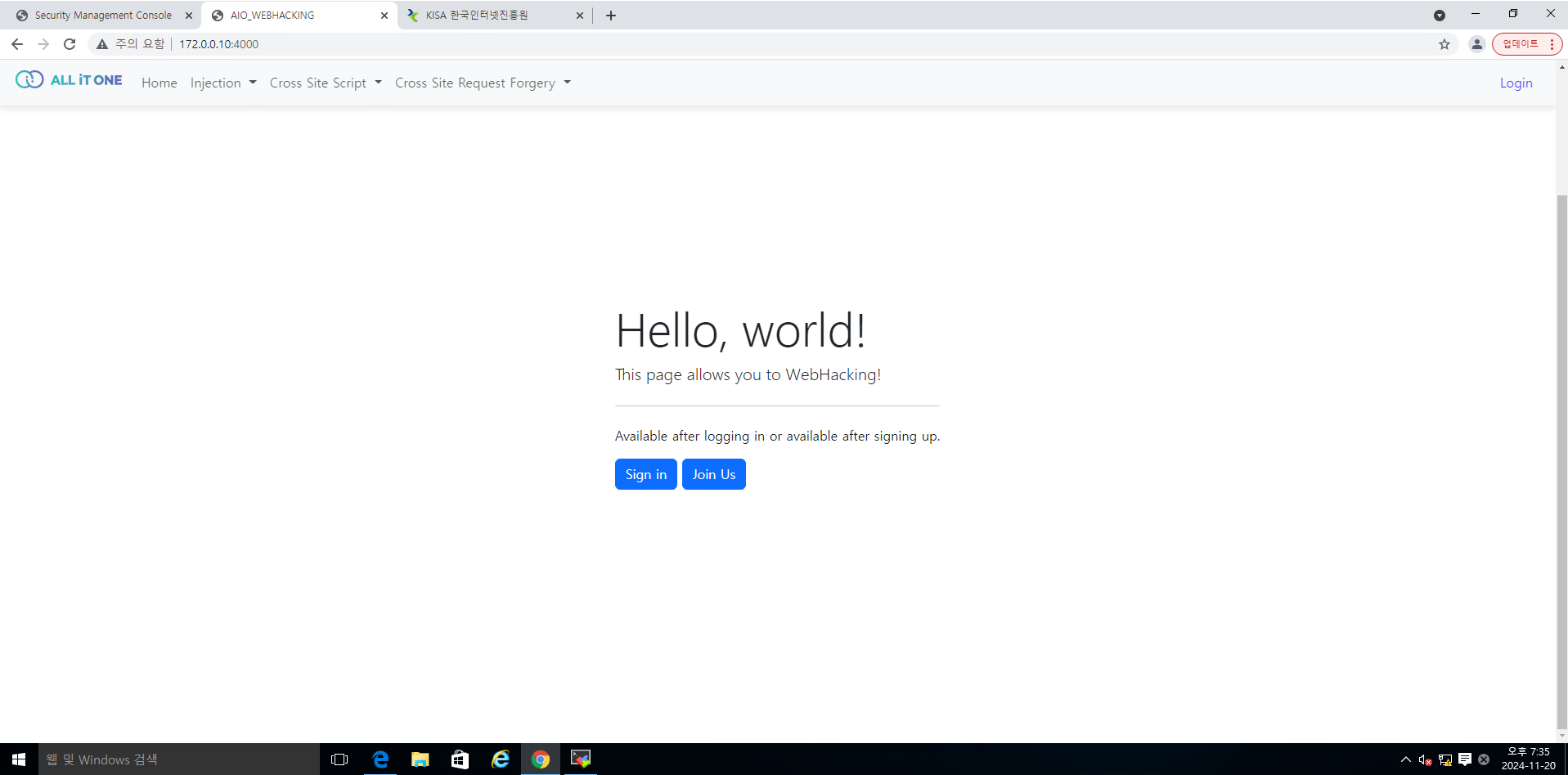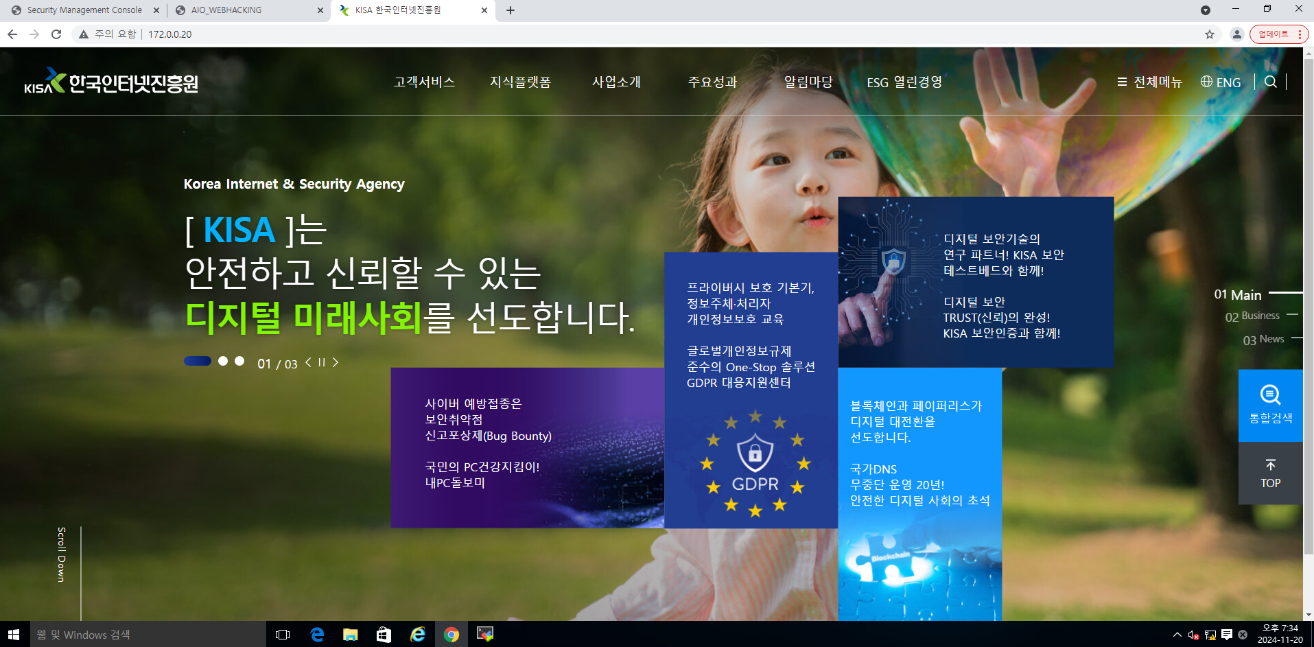 현재 기업내의 DMZ망에서 두 개의 Web 서버가 실행되고 있으며, 같은 내부망인 [AdminConsole]에서 접근하게 되면 위와 같이 접근이 가능하다.