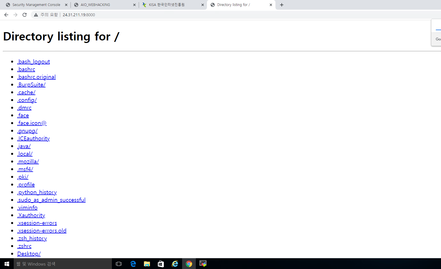이후 기업 내부망 중 하나인 [AdminConsol]에서 공격자가 호스팅 하는 웹 서버 “http://24.31.211.19:8000”에 접속하면 위와 같이 접근이 가능함