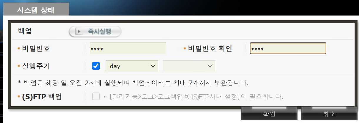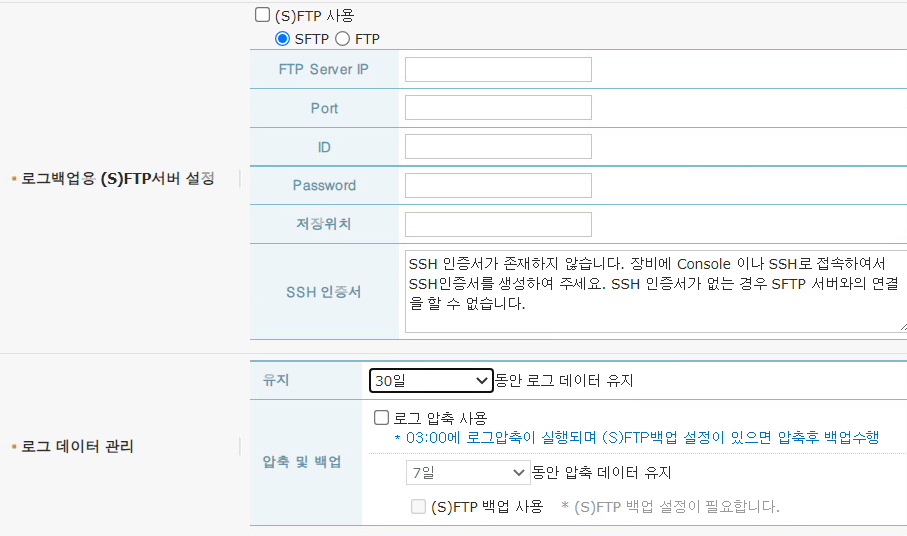 로그 백업용 FTP 서버가 존재한다면, 로그 데이터를 압축하여 FTP 서버로 전송이 가능하다.