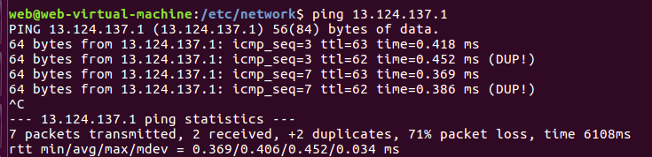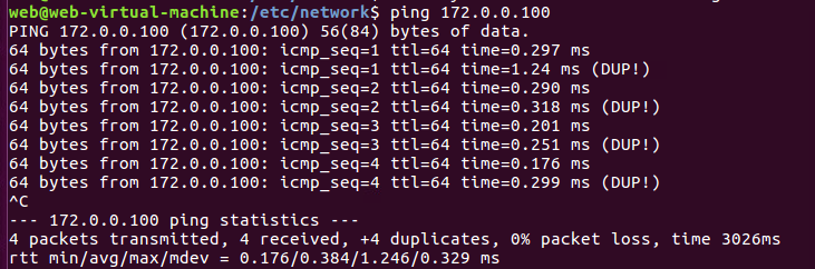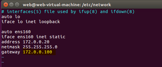 /etc/network 경로의 interfaces 파일에 gateway를 172.0.0.1 -> 172.0.0.100으로 수정