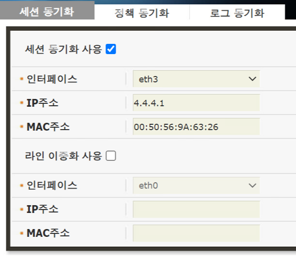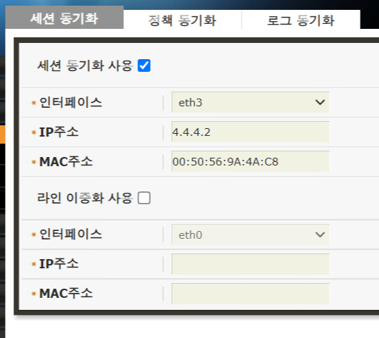 세션 동기화를 위해 XTM2 정보를 확인한다. (eth3을 기준으로 연결을 수행함)