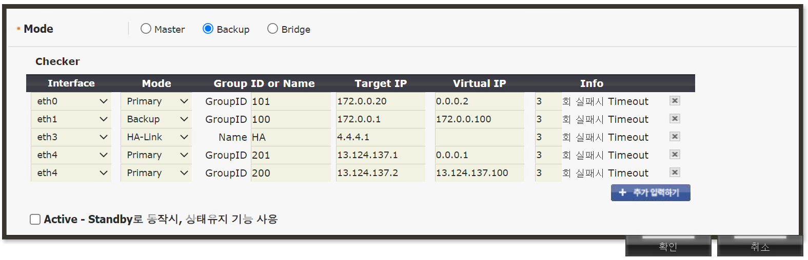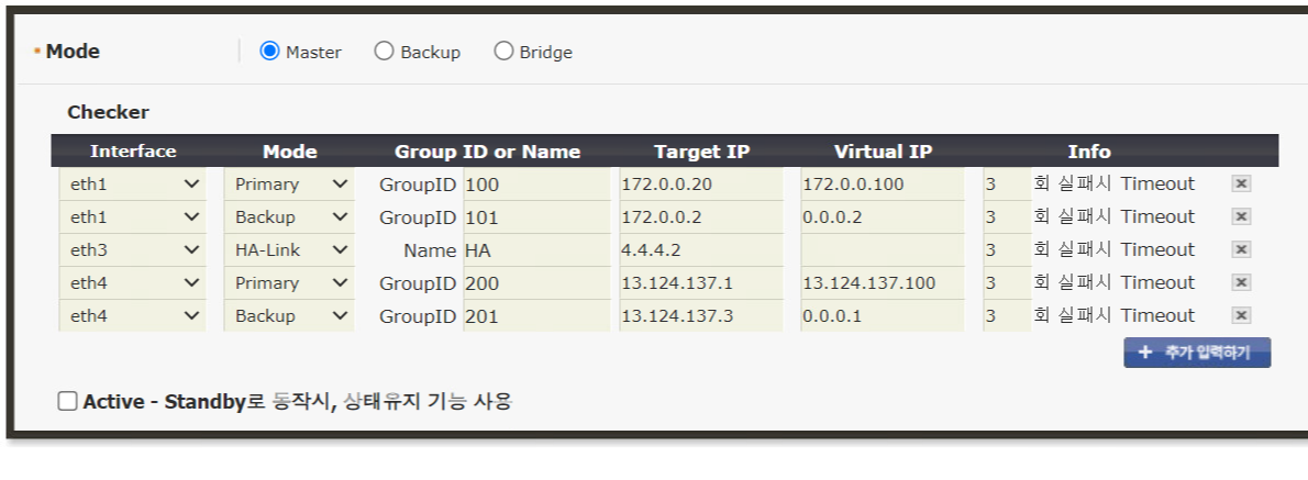 Checker 설정을 통해 XTM 서버끼리 서로 네트워크 상태(활성/비활성)를 확인할 수 있음