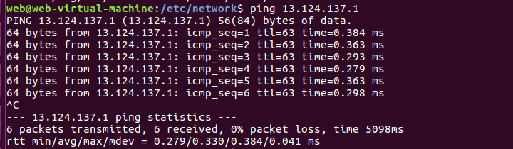 외부 라우터인 13.124.137.1으로 ping 전송 (작동하지 않음)