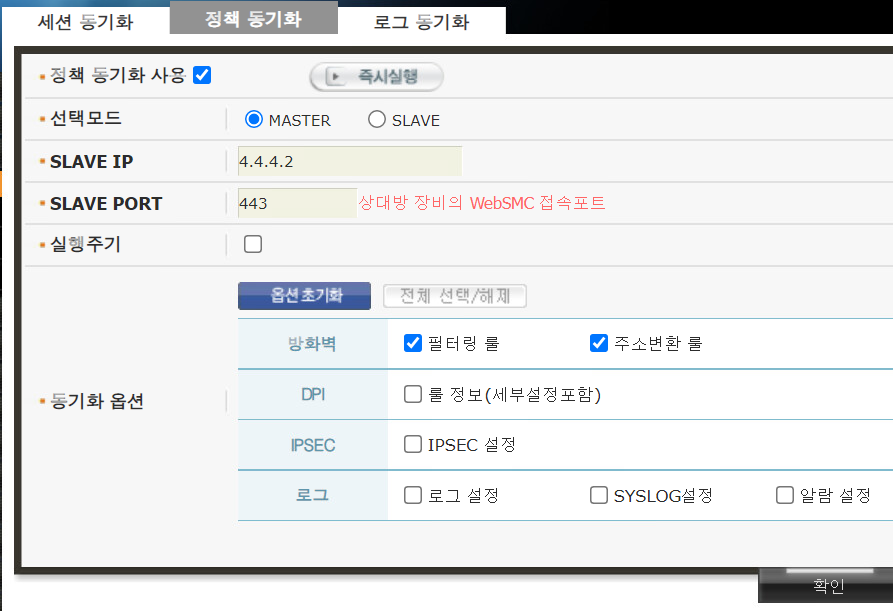 (3) XTM1 <-> XTM2 Master-Slave 설정