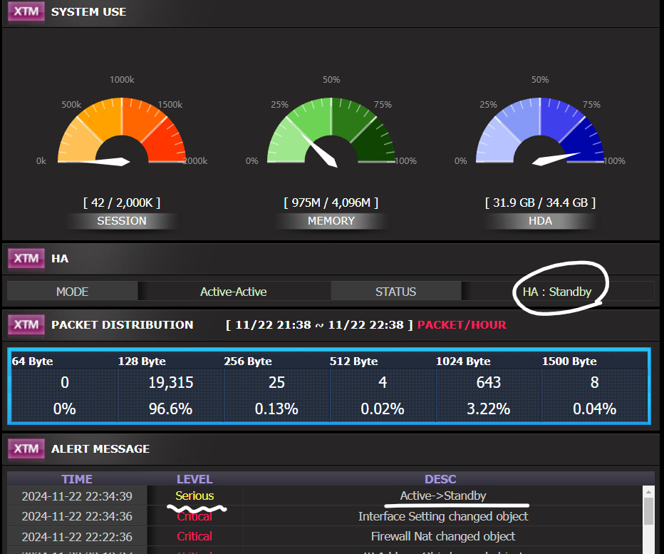 (왼쪽) XTM1은 Active에서 -> Standby로 변경되었고 (오른쪽) XTM2는 Standby에서 -> Active로 변경된 것을 확인할 수 있다.