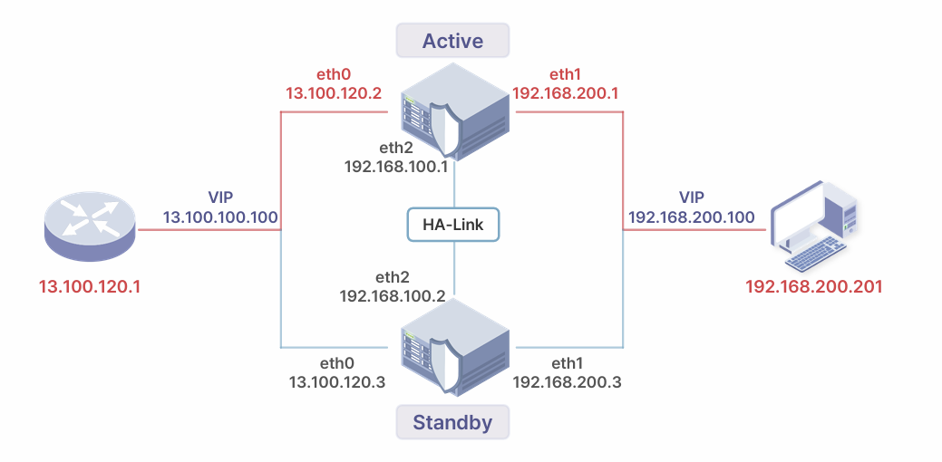 1. 기본적으로 서비스 요청을 처리하지 않으며 Active 장비의 VIP 13.100.100.100을 설치하여,
